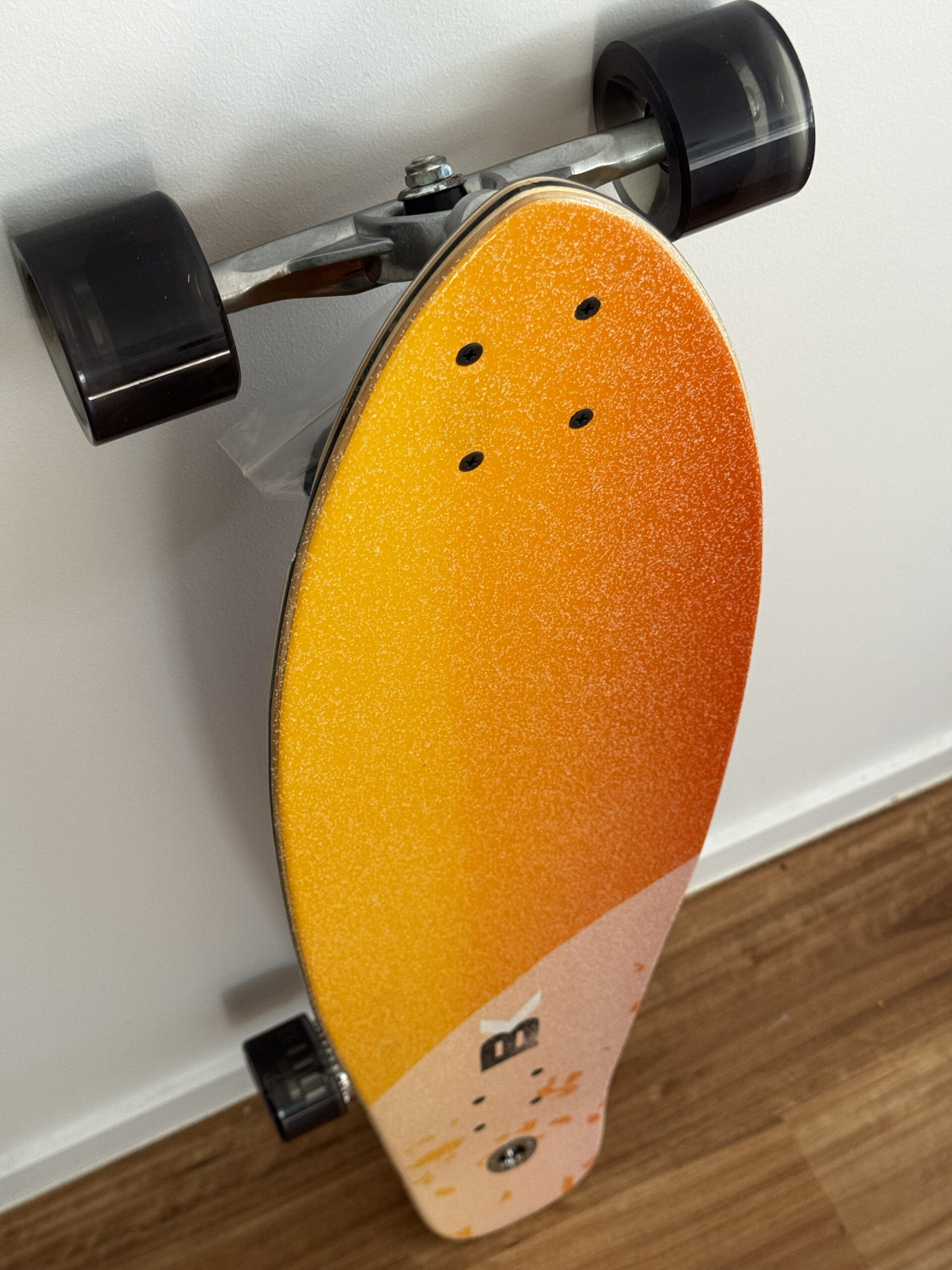 Boarder Kontrol Longboard – orange base, orange surf spray grip topside.