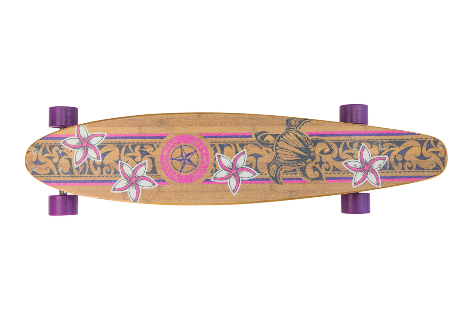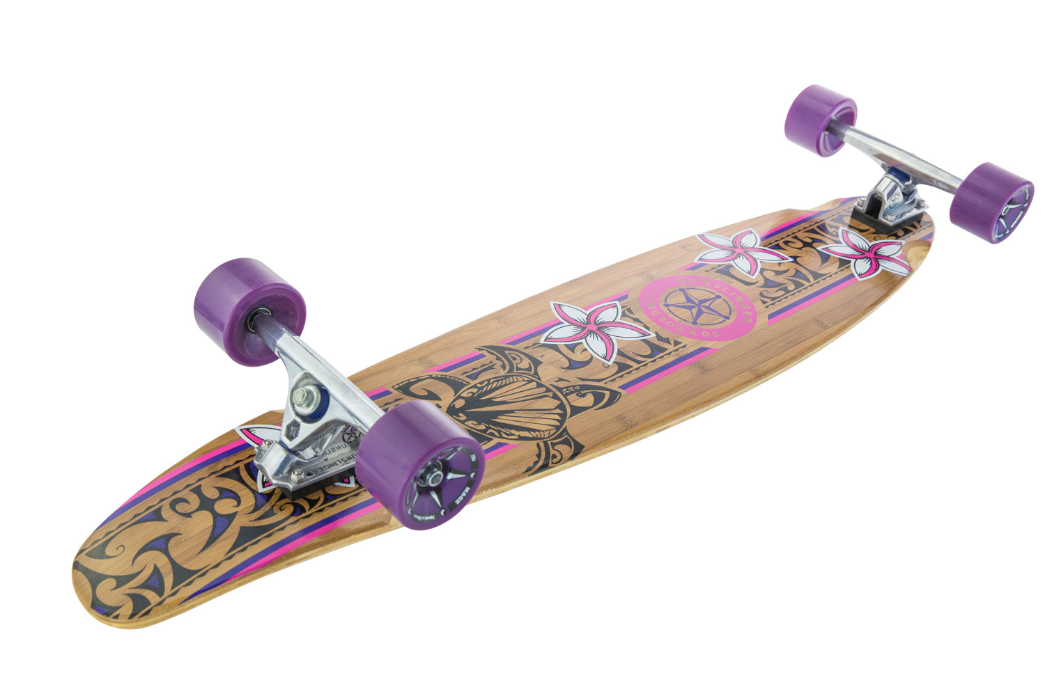 The beautiful floral design and colour scheme make Dark Pink a favourite for the ladies looking for a cool commuter board with the flexibility and kick for tricks.