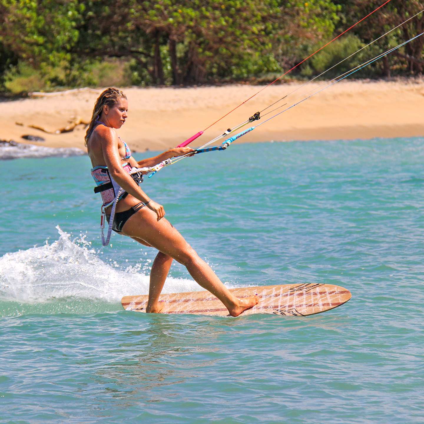IN A NUTSHELL… True to its roots, the Alaia takes it back to when surfing began in Hawaii. It is shaped out of a solid dual-wood core with a surf design that has been refined for a seamless transition into today’s kiteboarding. It has amazing up wind performance and is sensationally fun and playful. Its performance shines in light to marginal winds.