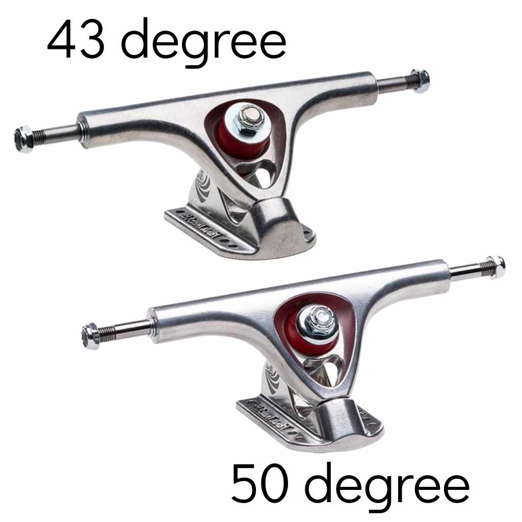 A 43° truck can be used as a stable rear truck to create a directional downhill board or a LDP (long distance pump) set up.